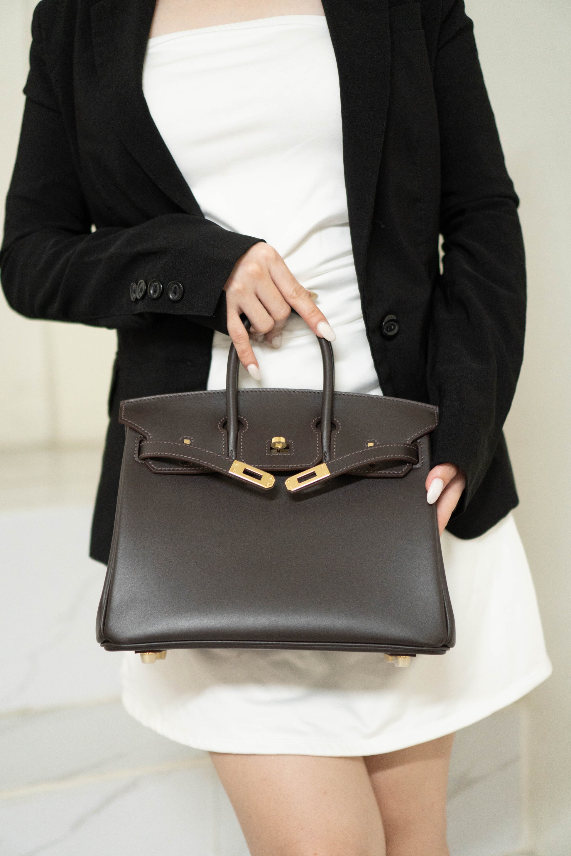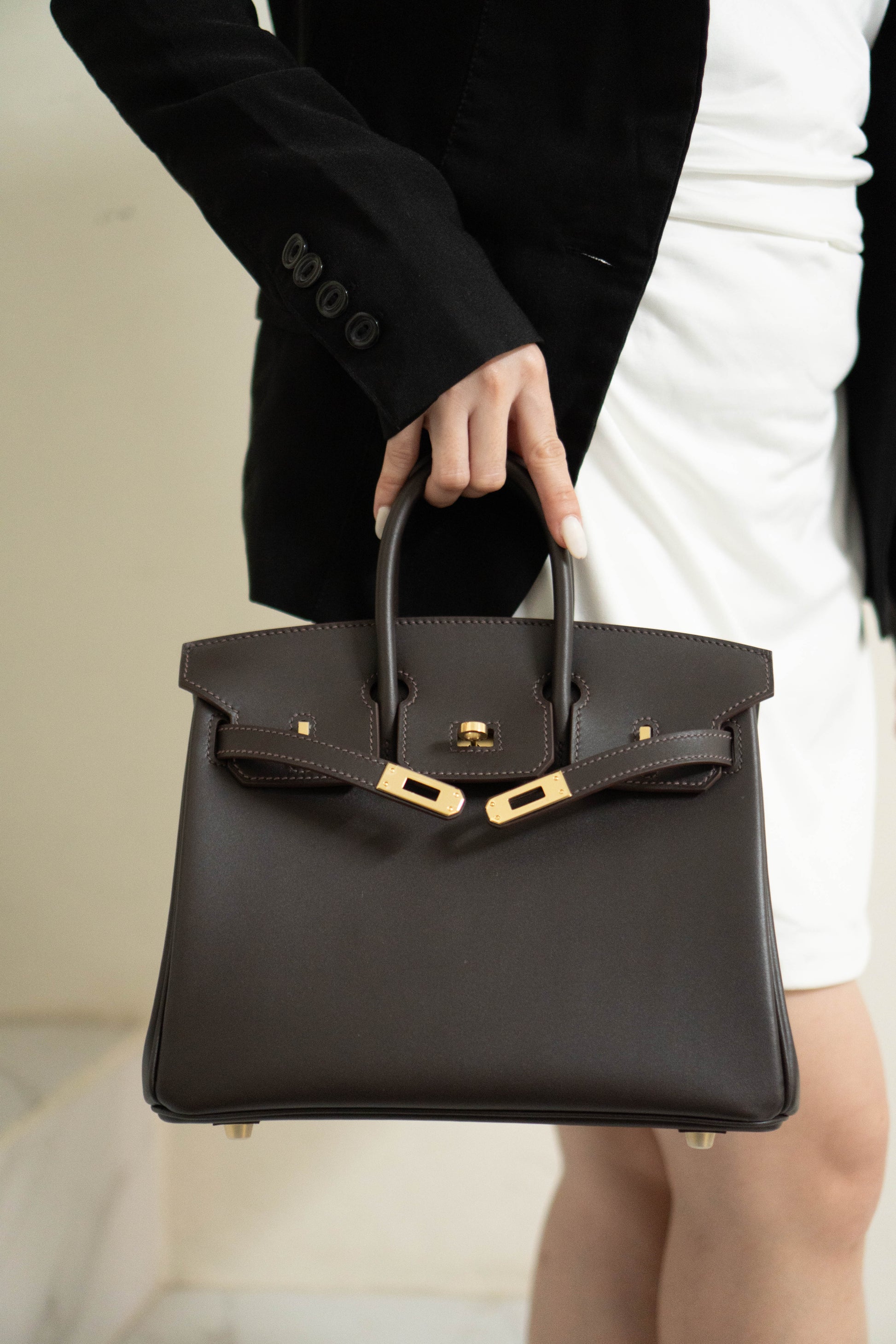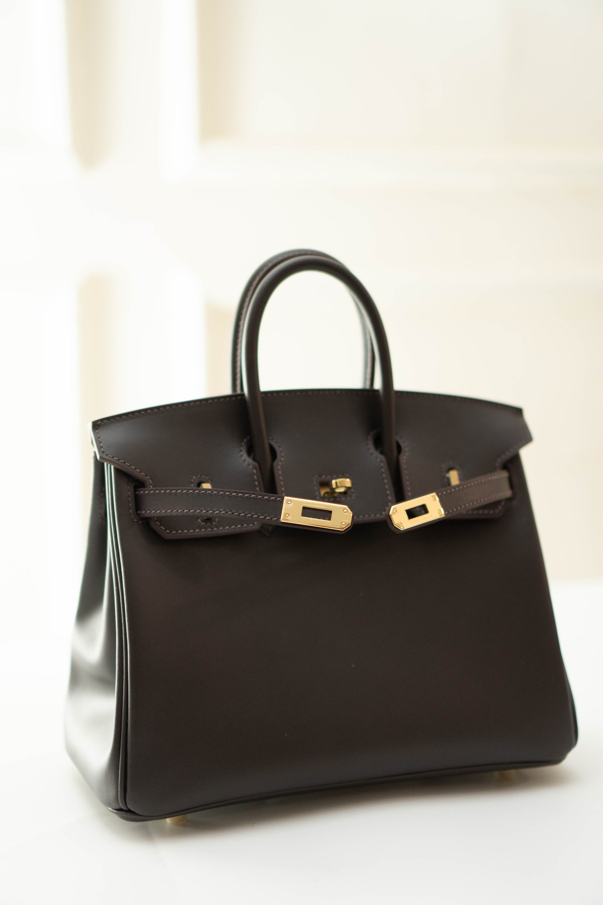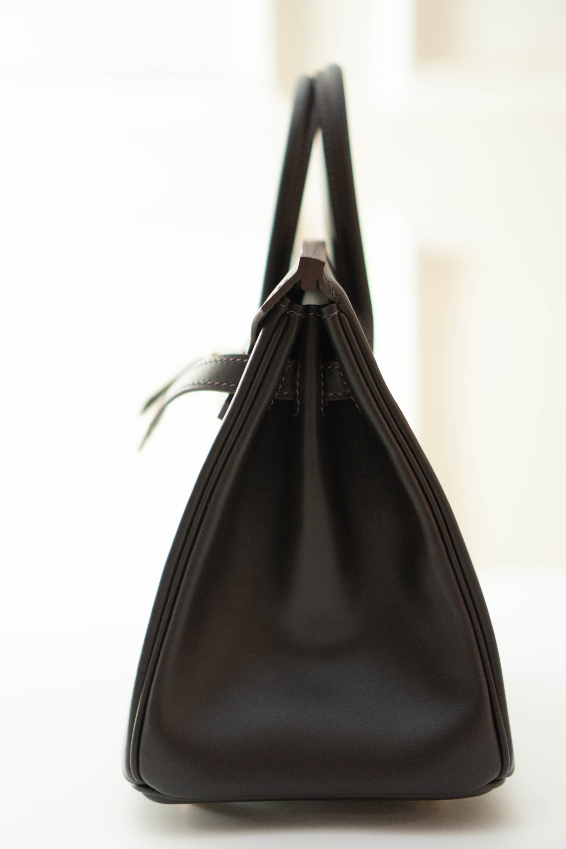 A timeless icon of sophistication, the Birkin 25 in rich chocolate or ebony brown leather with gold hardware is a symbol of understated luxury and impeccable craftsmanship. Originally conceived as a functional travel satchel, this medium-sized bag is practical for daily use while maintaining its elegant, structured 'posture'.