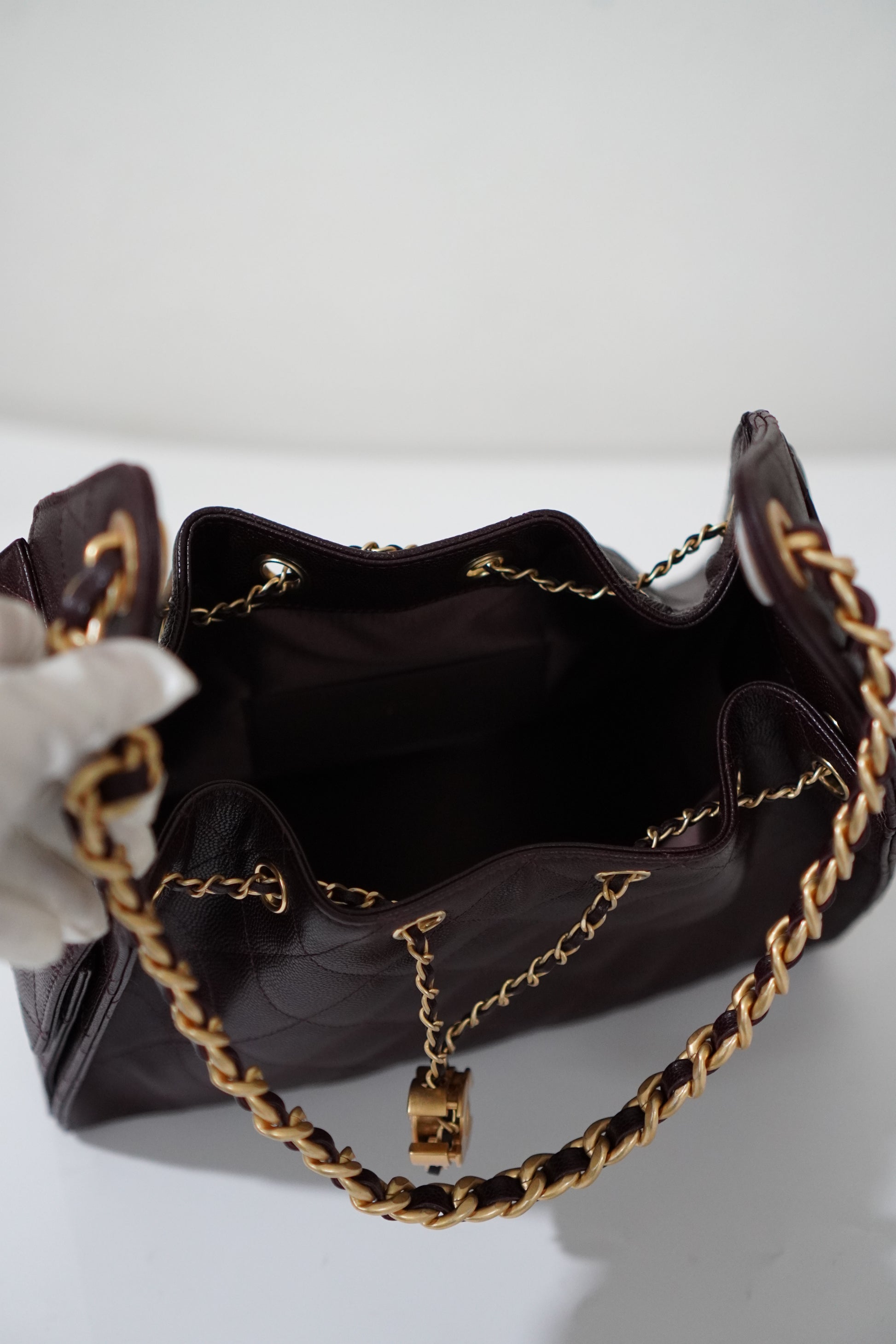 A refined blend of timeless elegance and practical design, the C 25 in Dark Brown captures attention with its rich quilted leather and luxurious finish. The structured yet relaxed silhouette offers versatility, while the diamond quilting adds a touch of signature sophistication. Paired with lustrous gold hardware and a bold chain strap, this piece is both a statement and a classic essential.