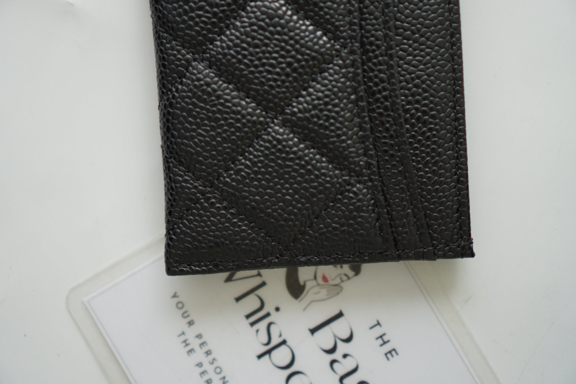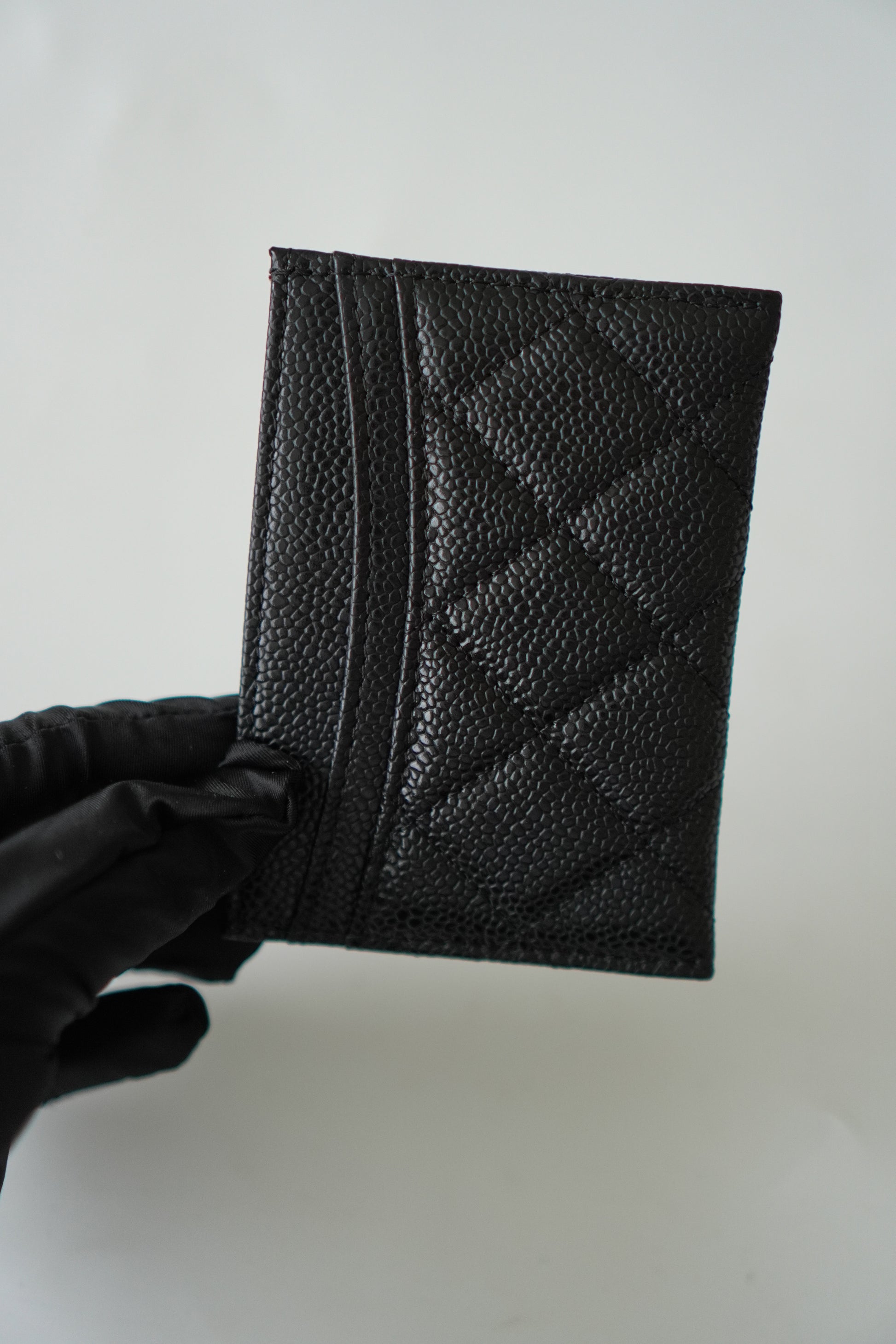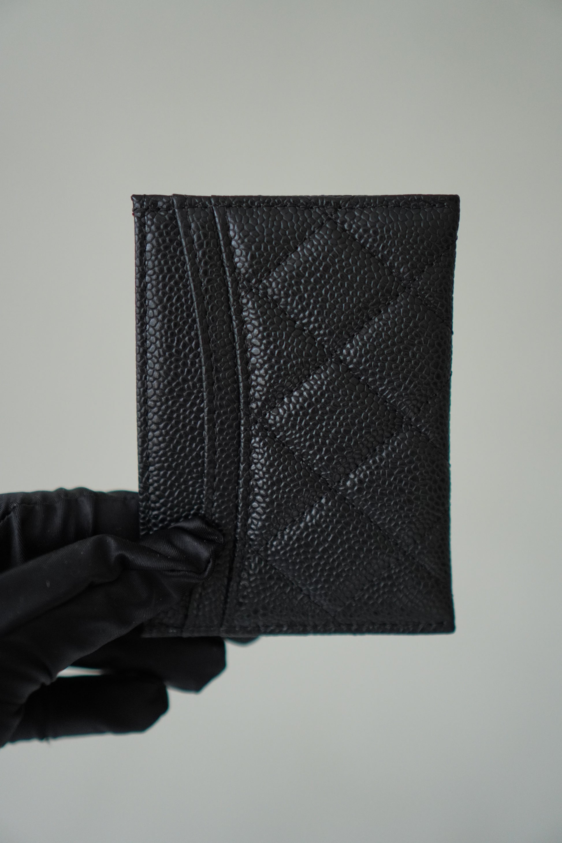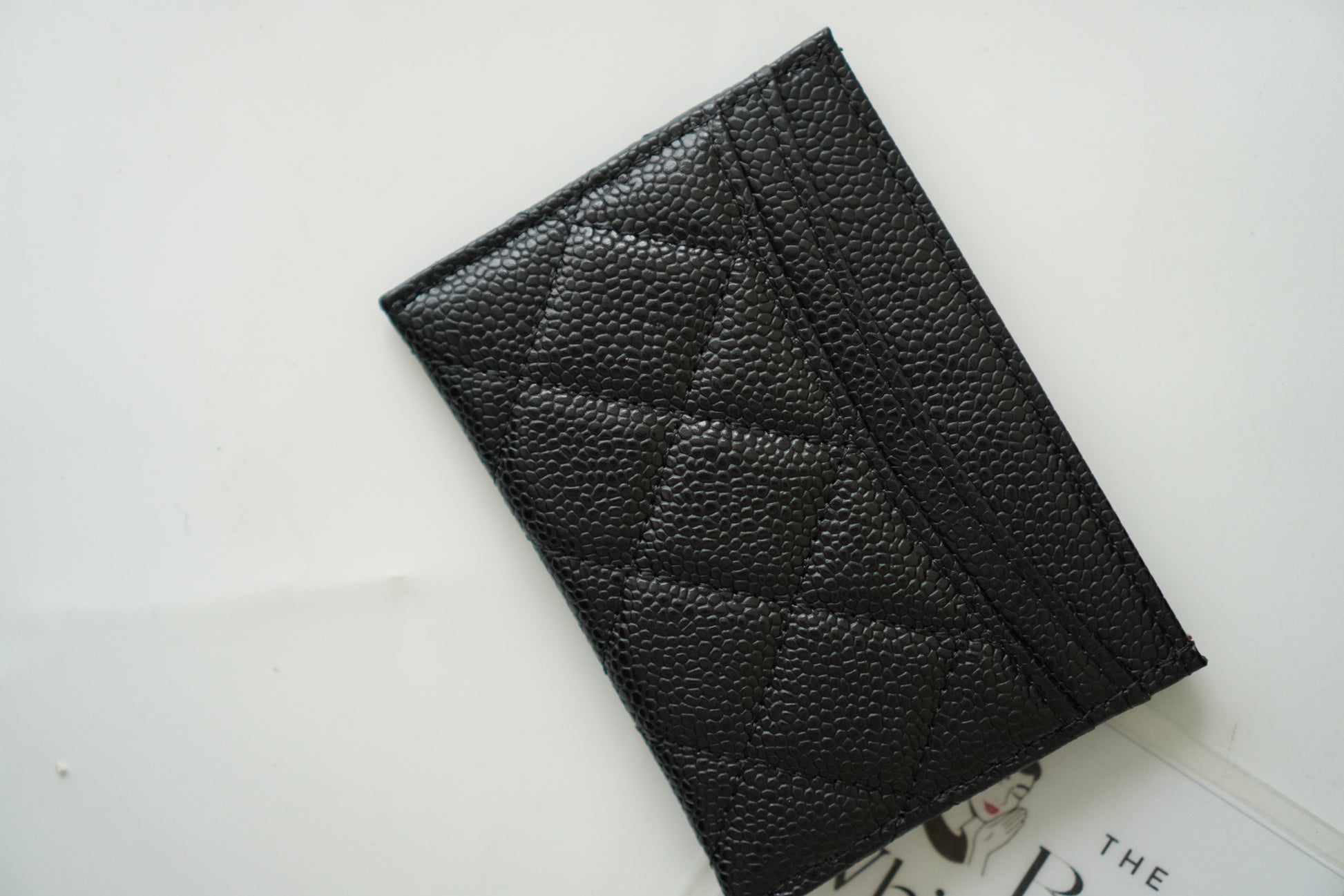 A sleek classic, this Caviar Card Holder offers a timeless quilted finish with durable caviar leather and elegant gold hardware—perfect for keeping essentials organized in a compact, luxurious piece.