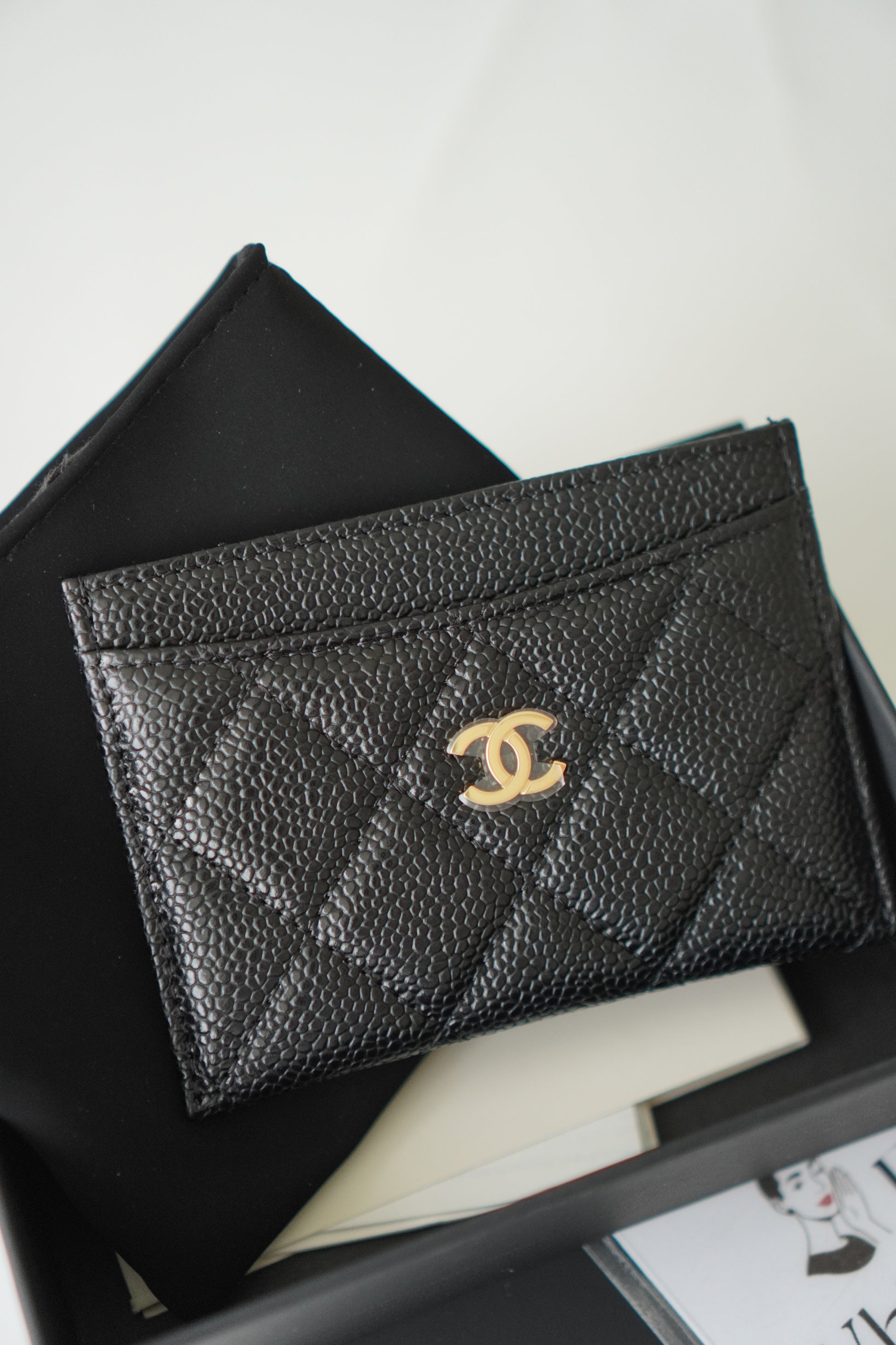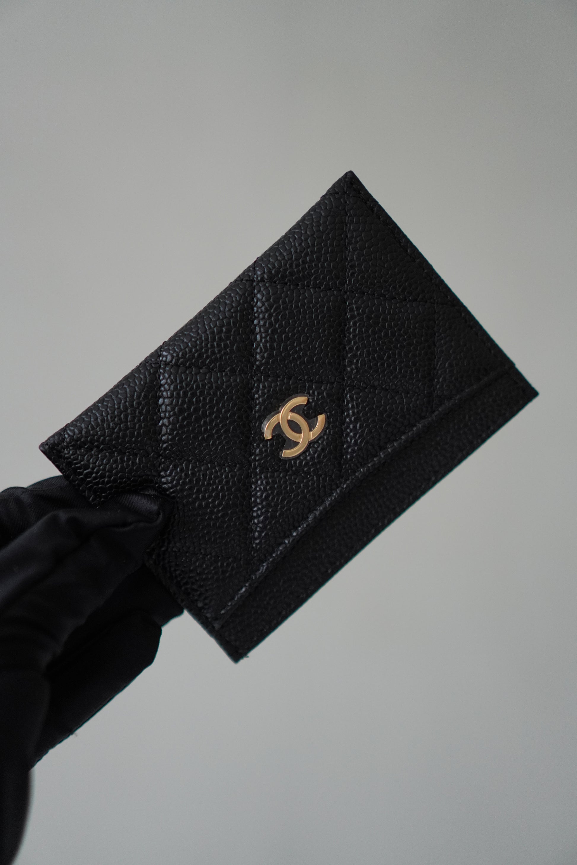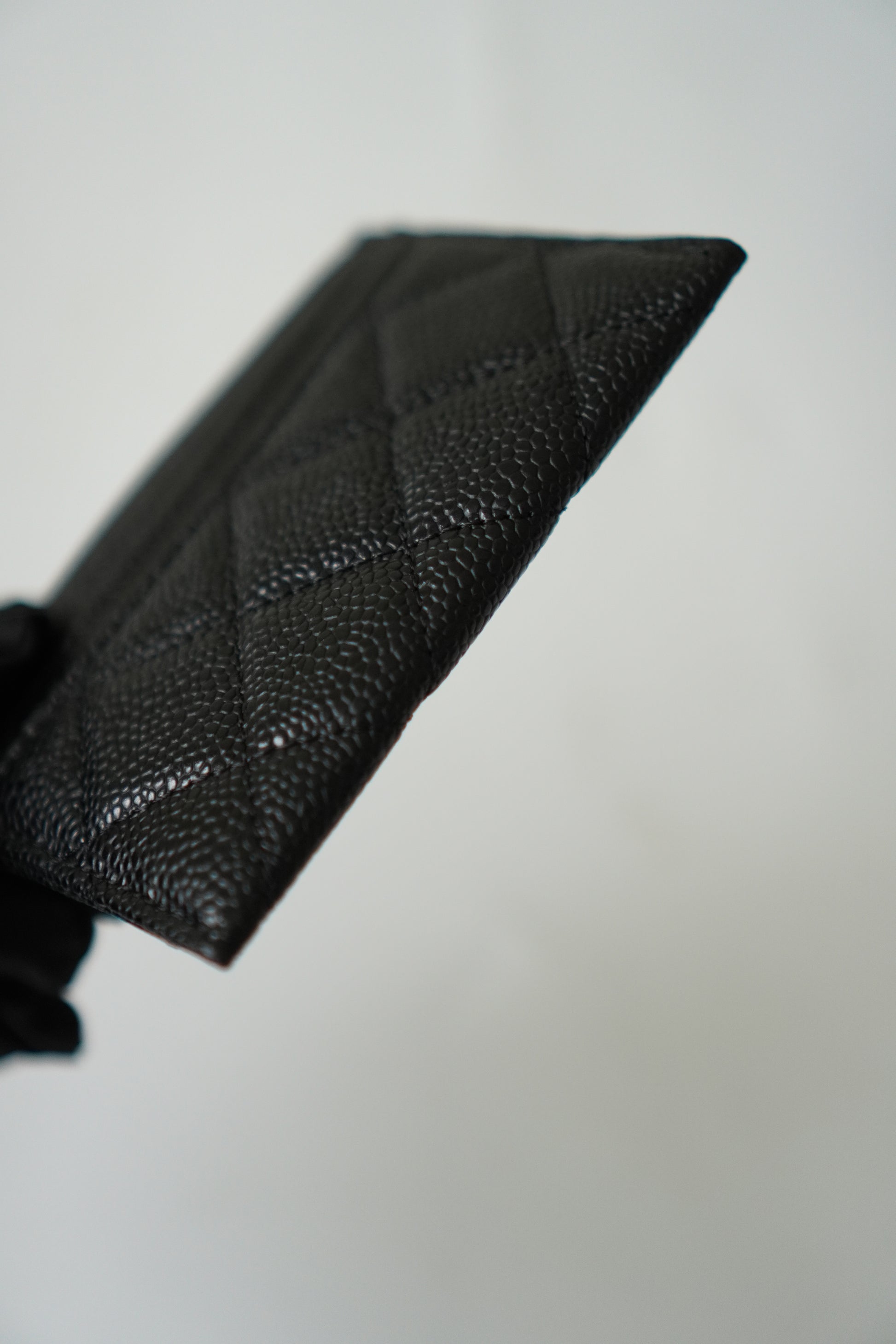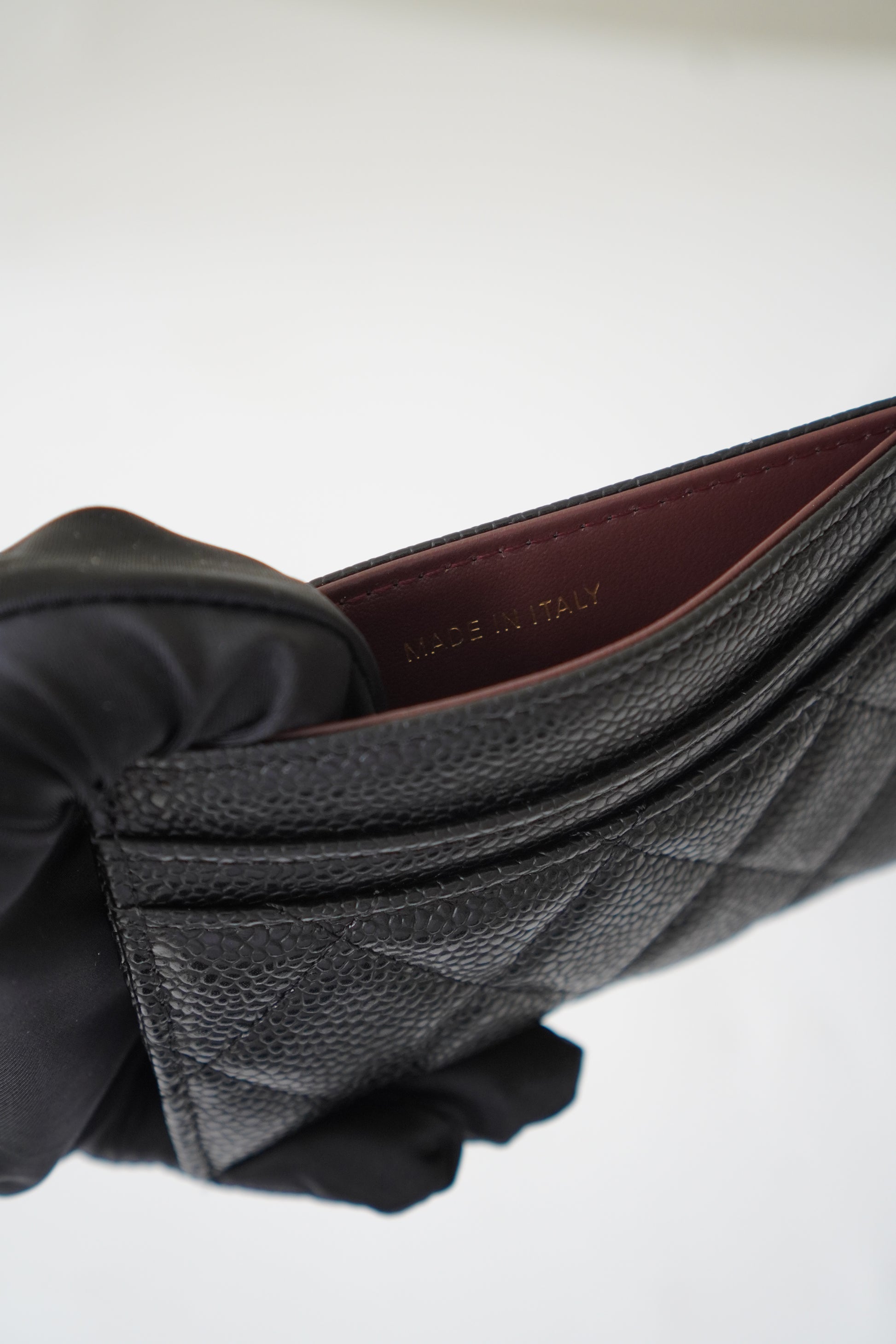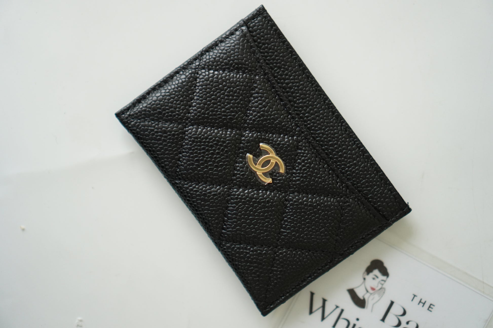 A sleek classic, this Caviar Card Holder offers a timeless quilted finish with durable caviar leather and elegant gold hardware—perfect for keeping essentials organized in a compact, luxurious piece.