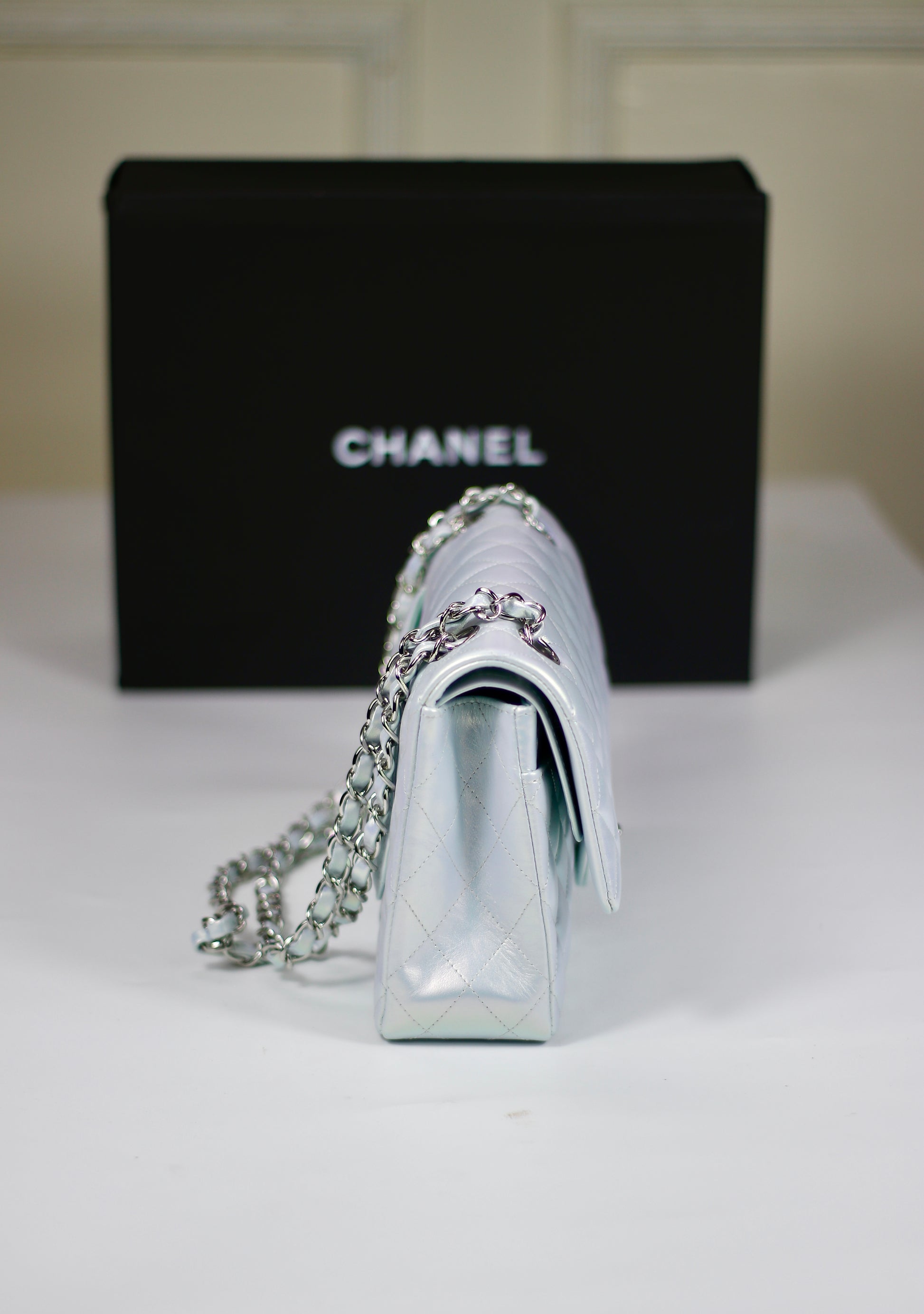Classic Flap – Iridescent Blue 21K with Silver Hardware