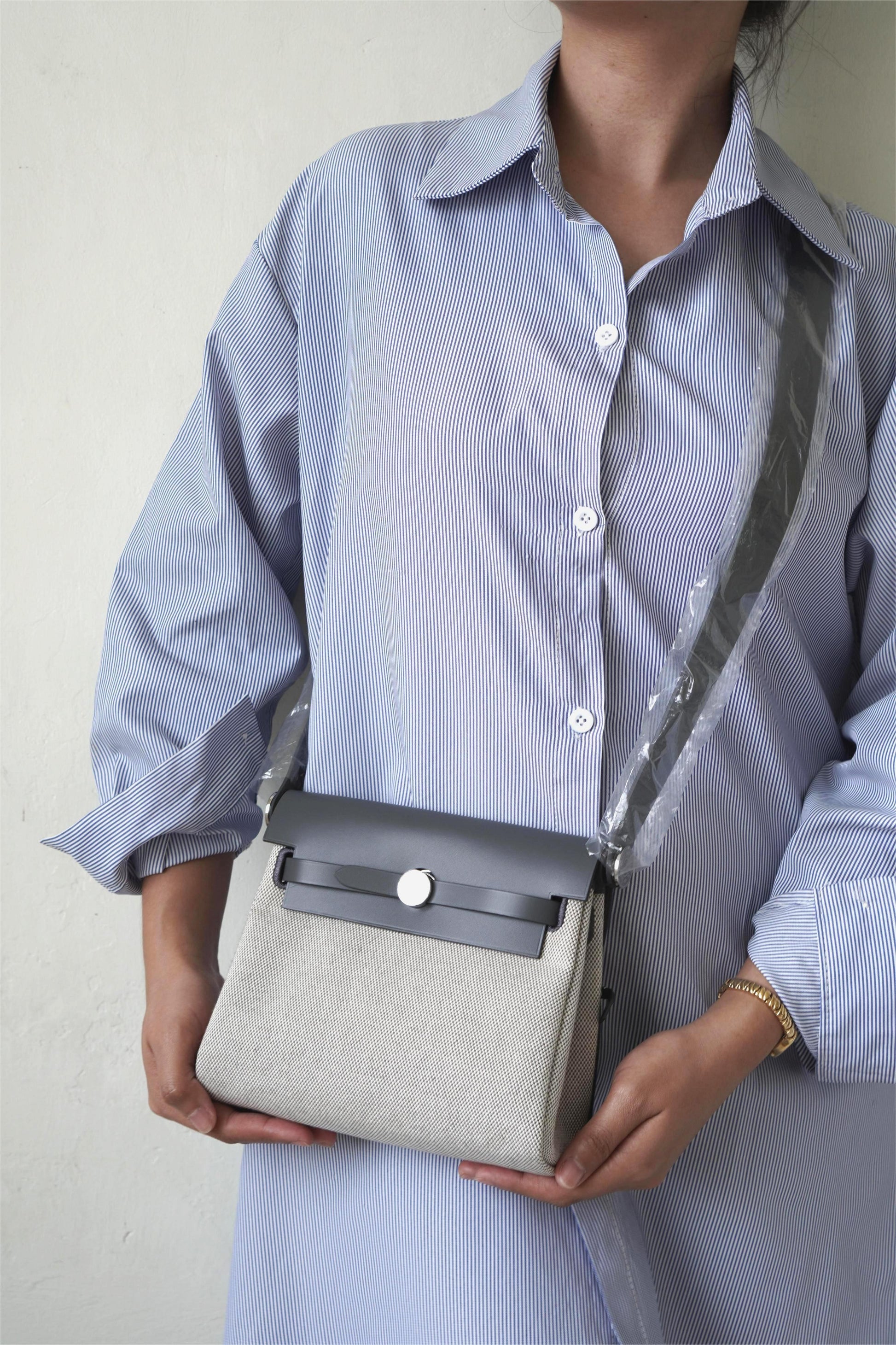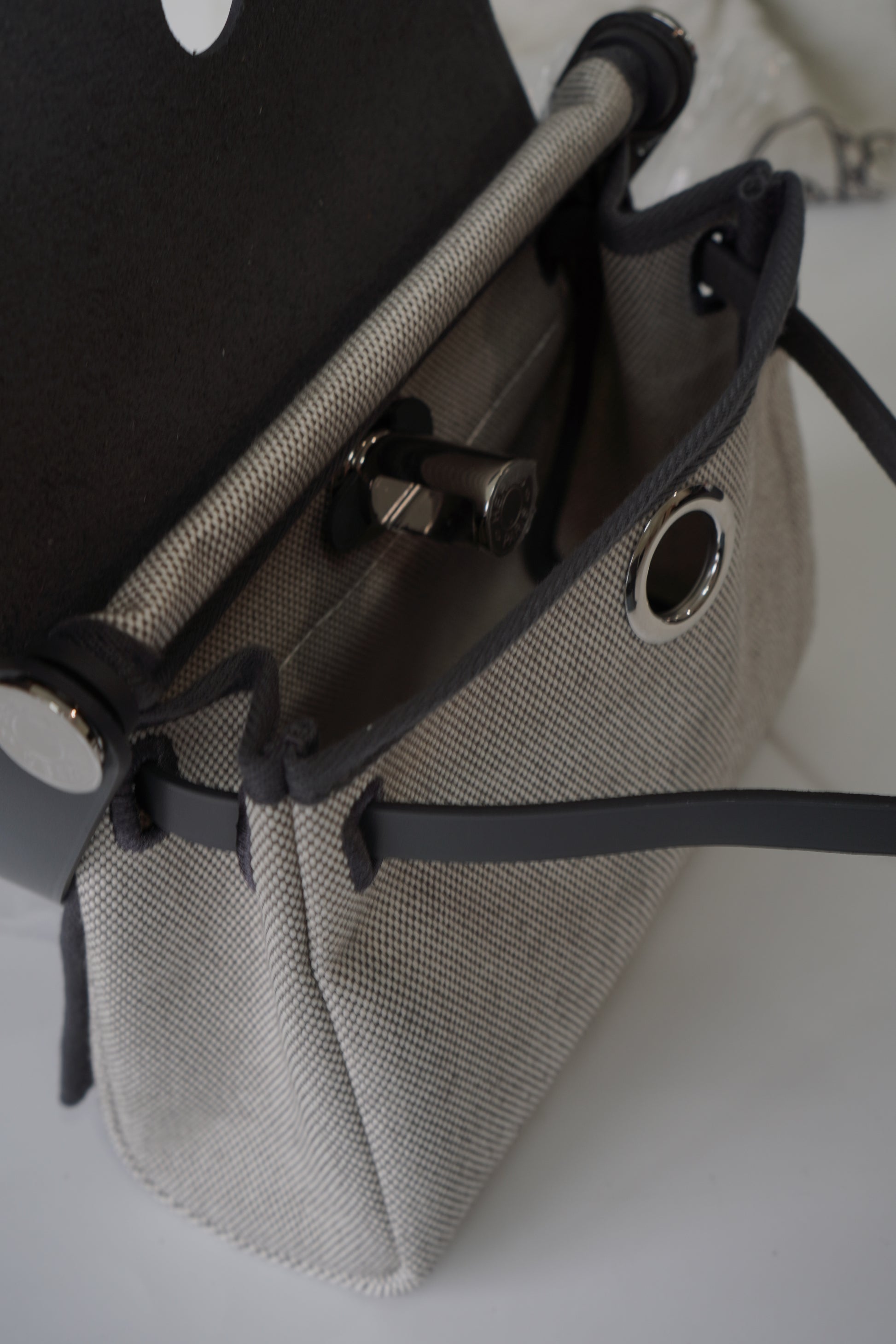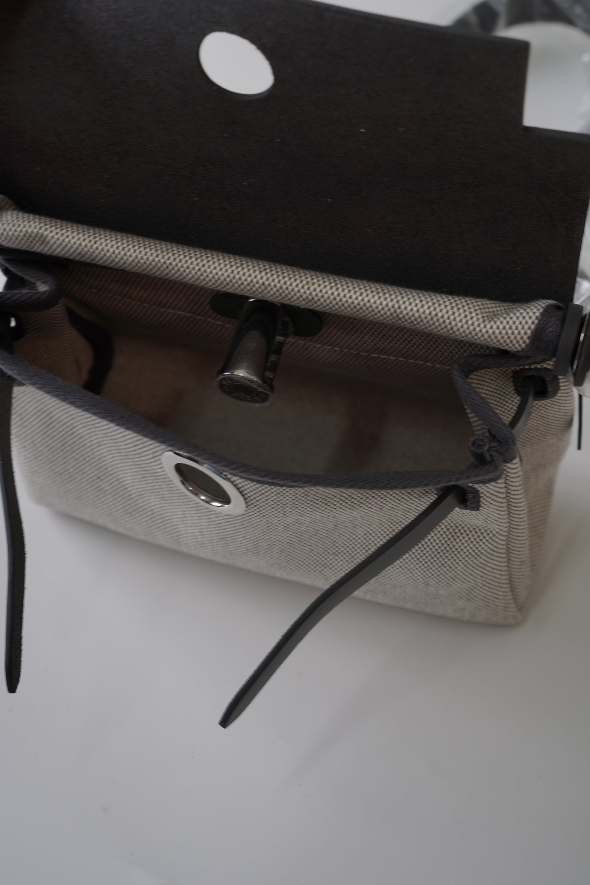 A refined blend of casual elegance and versatility, the Herbag Mini Gray combines a structured leather flap with a durable canvas body. Its minimalist design is elevated by palladium hardware and the signature Clou de Selle clasp, making it the perfect companion for everyday wear. Lightweight yet practical, this mini bag offers understated sophistication that transitions seamlessly from day to night.