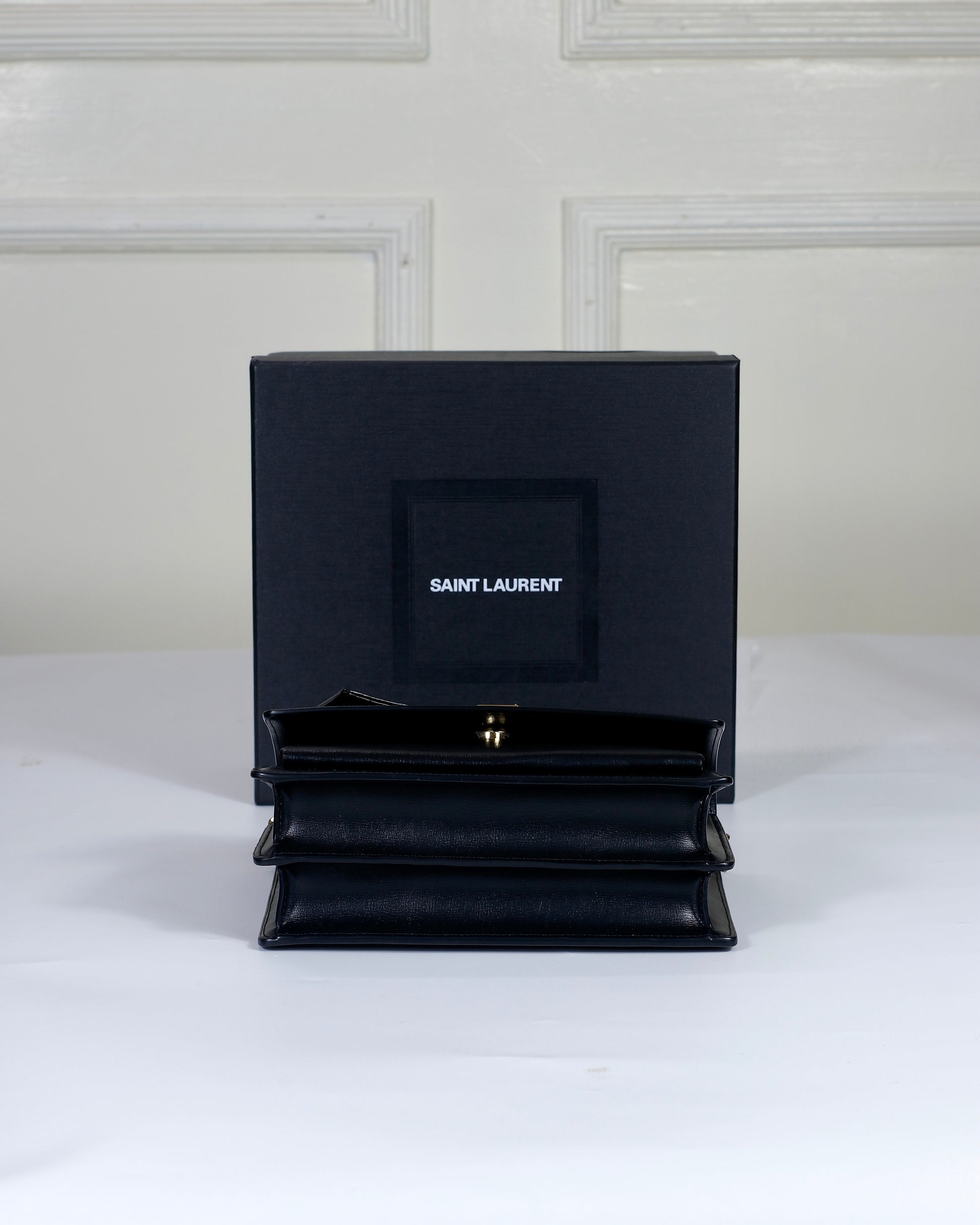 Sleek, structured, and always in style — the Sunset Medium in Black is the go-to piece for sophisticated edge. Finished in smooth leather with gold-tone hardware and the iconic YSL monogram, this versatile silhouette transitions effortlessly from daywear to evenings out. Crafted in high-quality materials that closely match the original in look and feel.