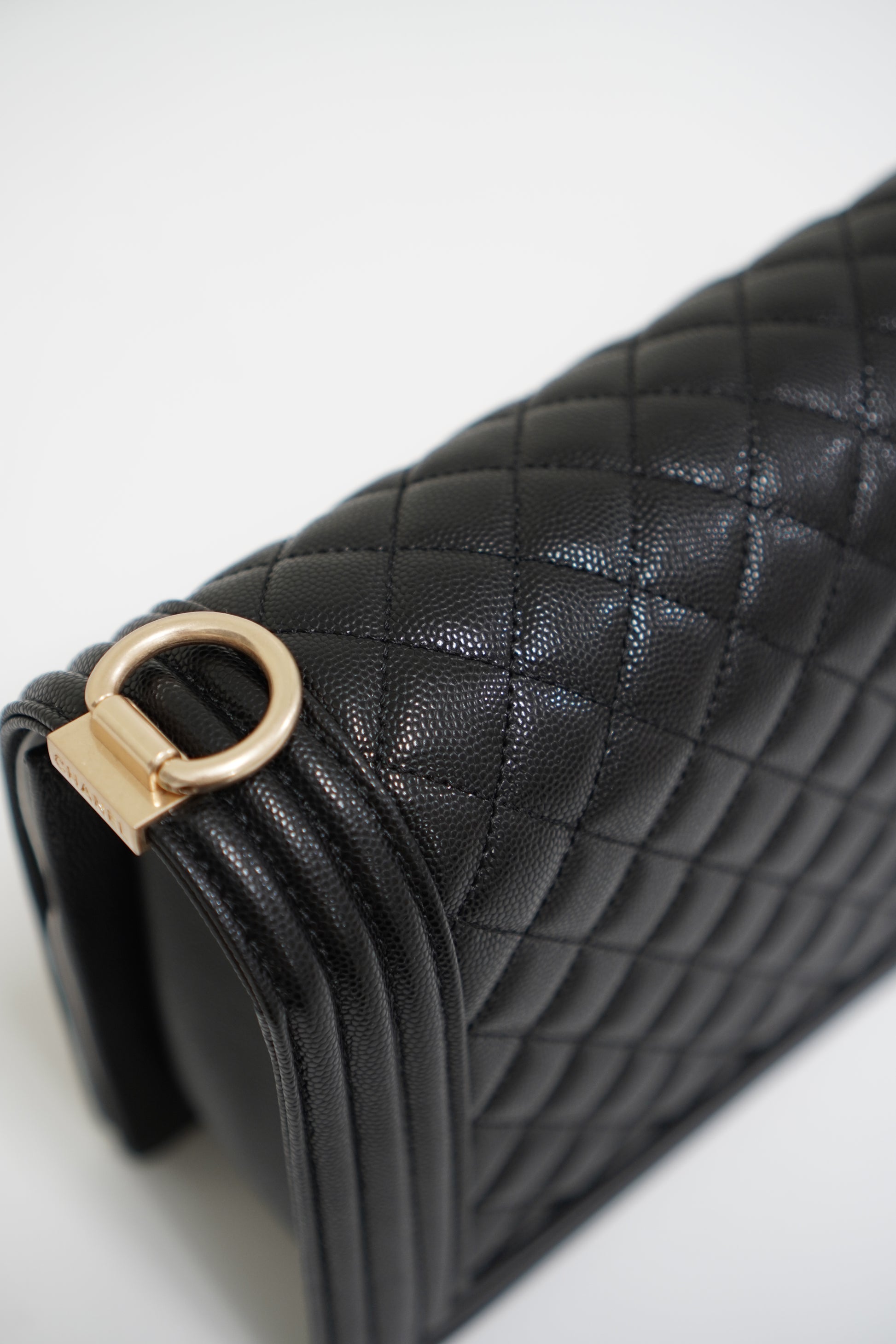 Bold, structured, and effortlessly chic — this Le Boy New Medium Bag in Black Caviar leather is the epitome of modern luxury. Its signature diamond quilting and sleek silhouette bring a contemporary edge to a timeless design. Crafted from durable, textured caviar leather, it offers both resilience and sophistication, while the gold-tone hardware adds a touch of opulence. Perfect for day-to-night wear, this piece is designed for those who love classic style with a modern twist.