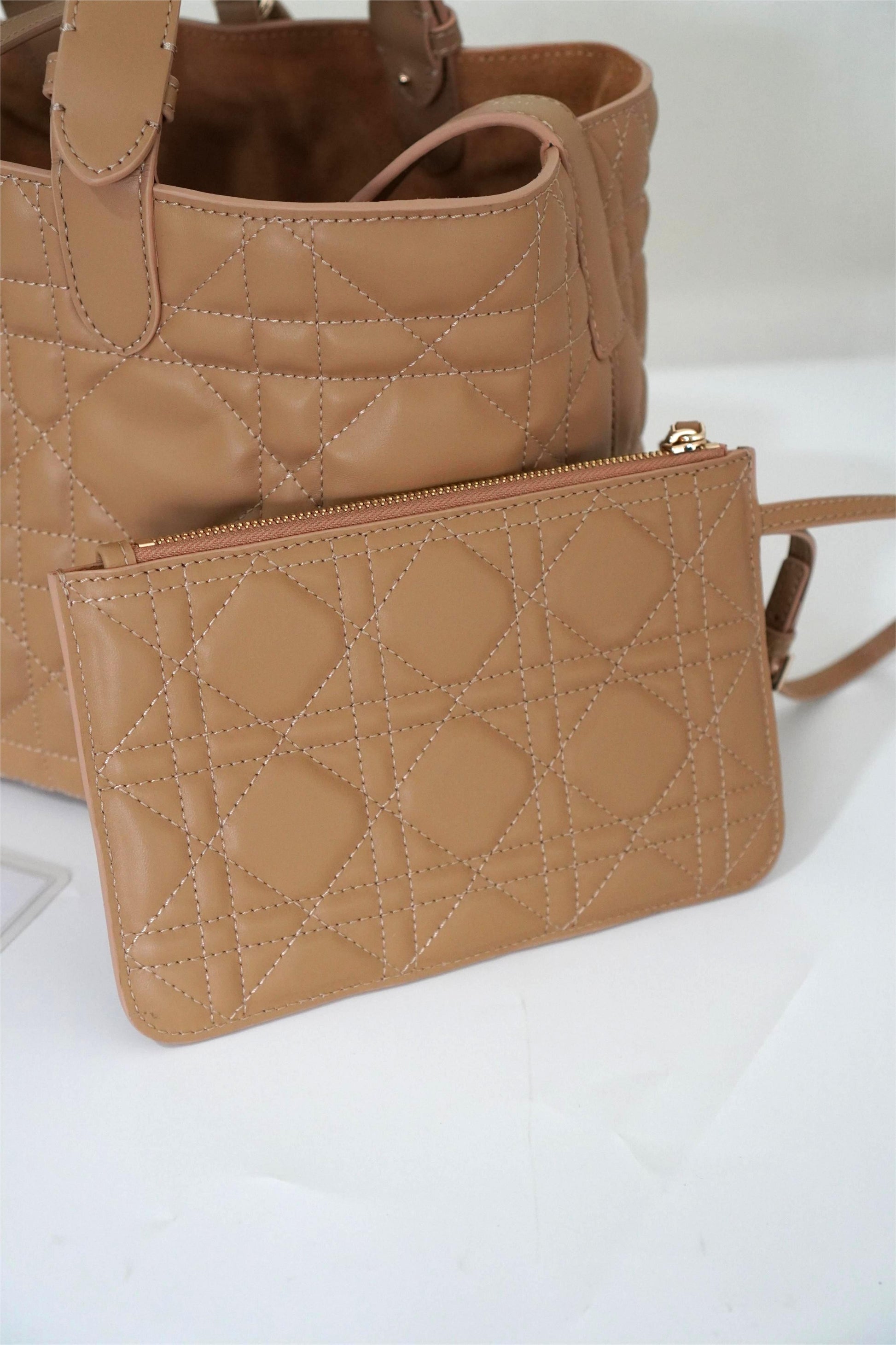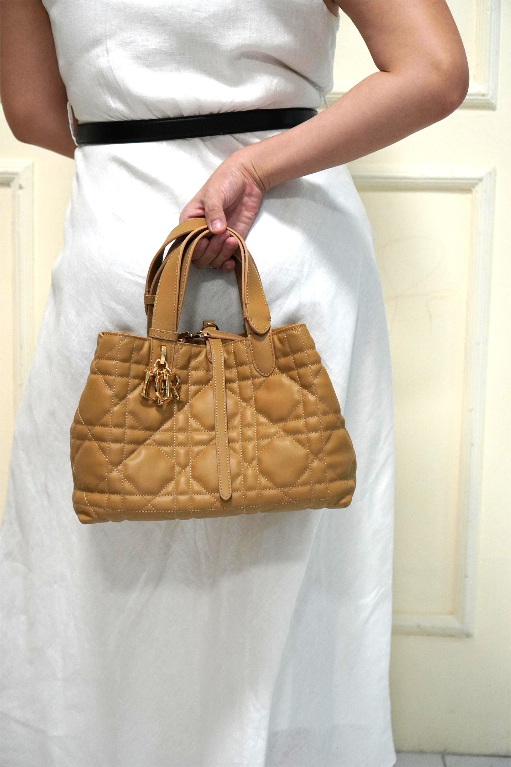 The Toujours Tote in Warm Caramel blends timeless elegance with modern versatility. Crafted from supple calfskin leather, its relaxed structure is elevated by signature quilted stitching and polished gold hardware. The spacious silhouette offers both style and functionality, complete with dual handles and a removable pouch for added convenience. Perfect for everyday sophistication, it transitions seamlessly from day to night.