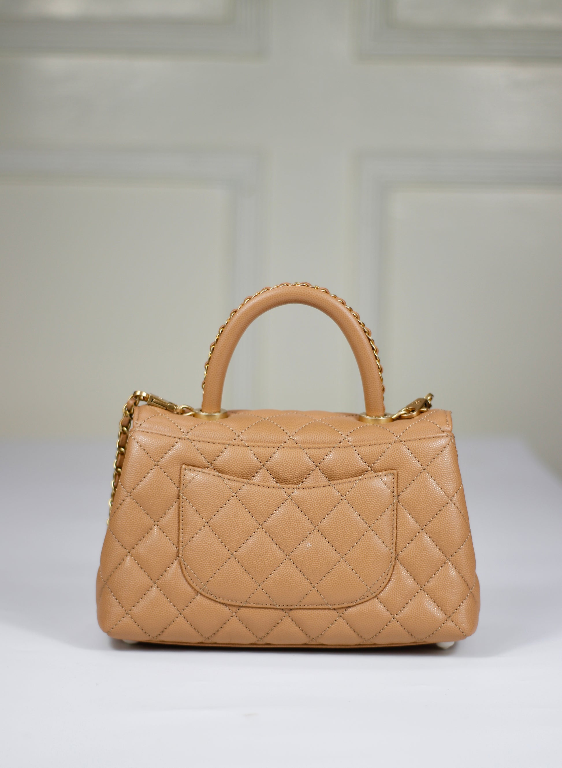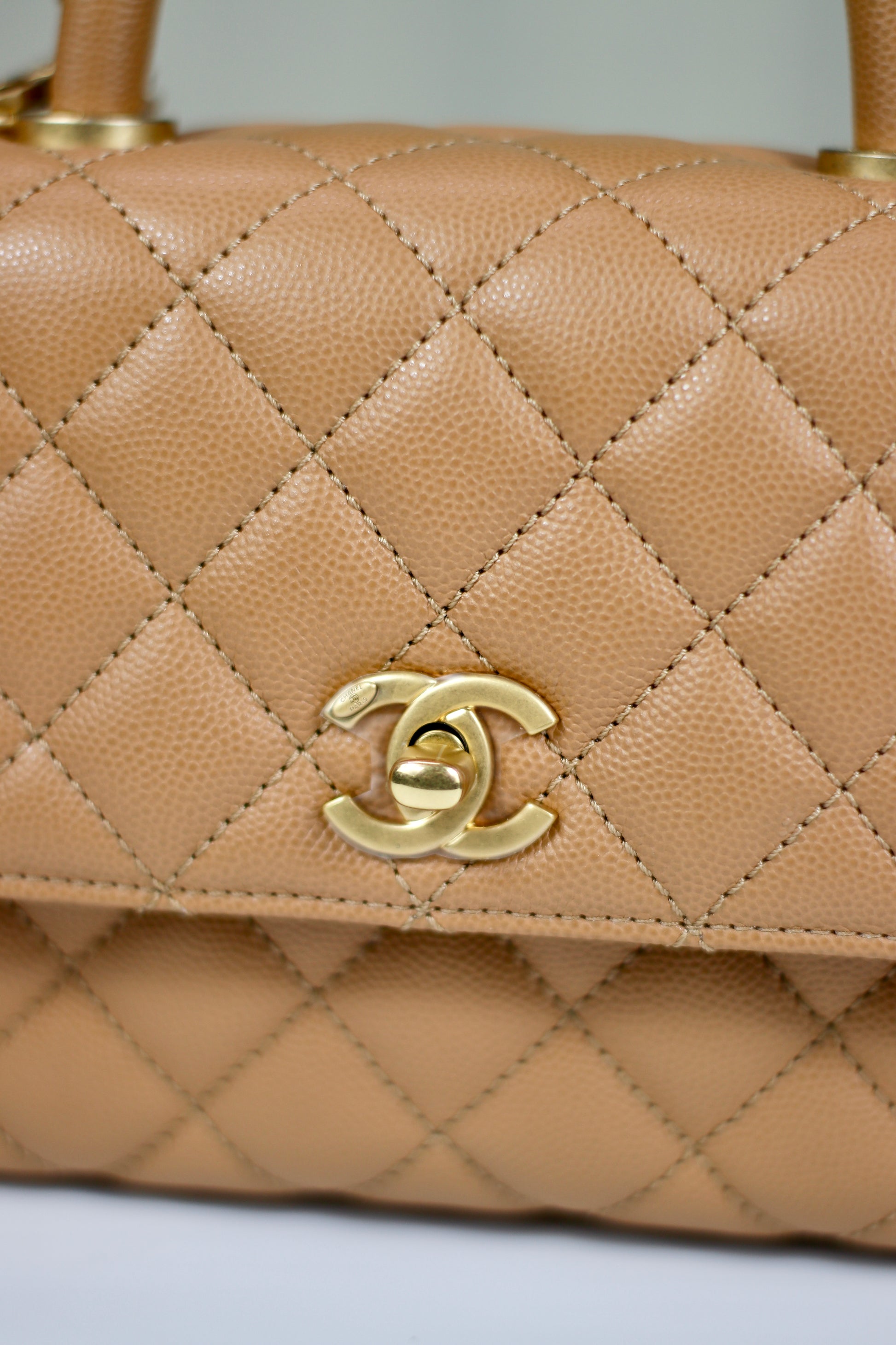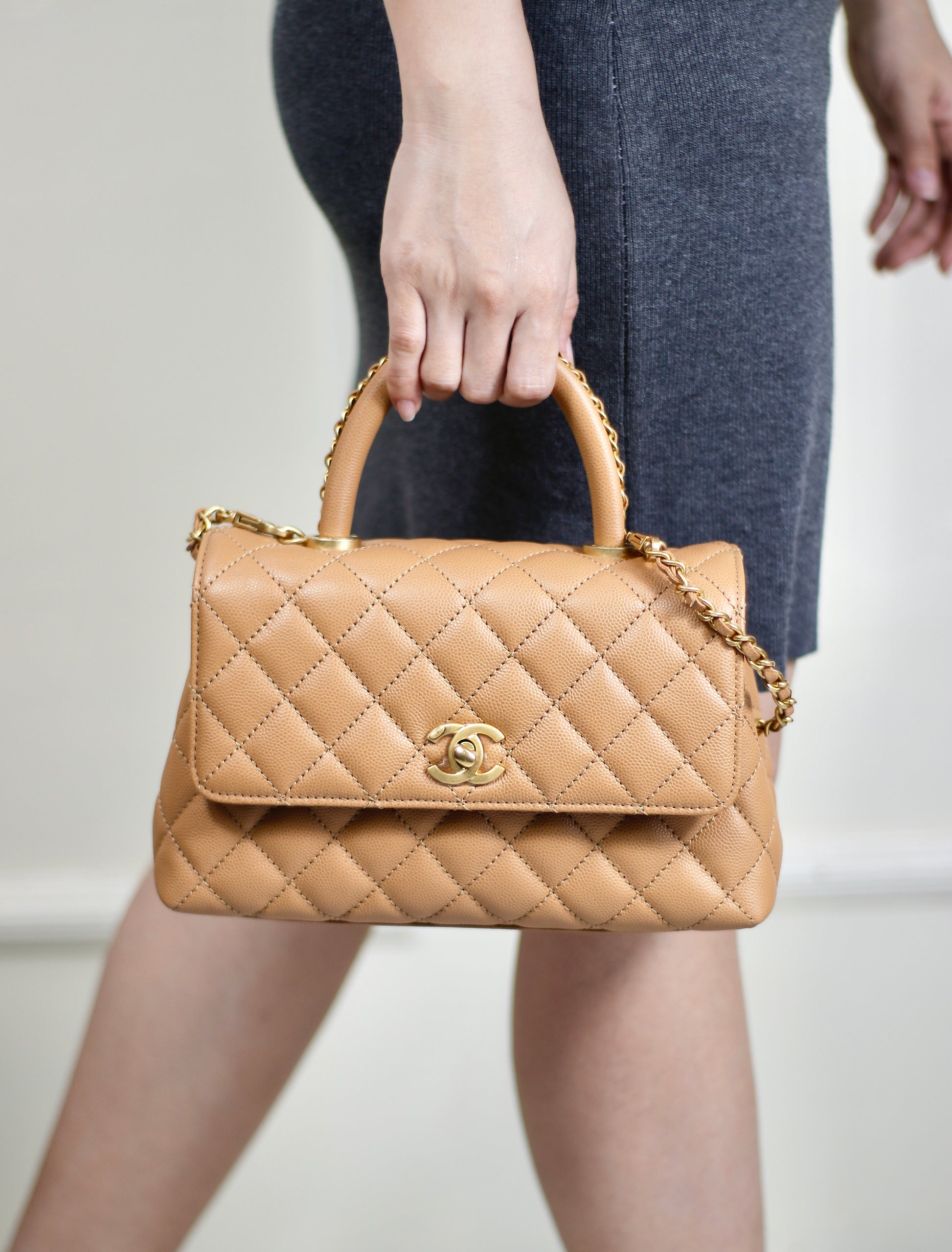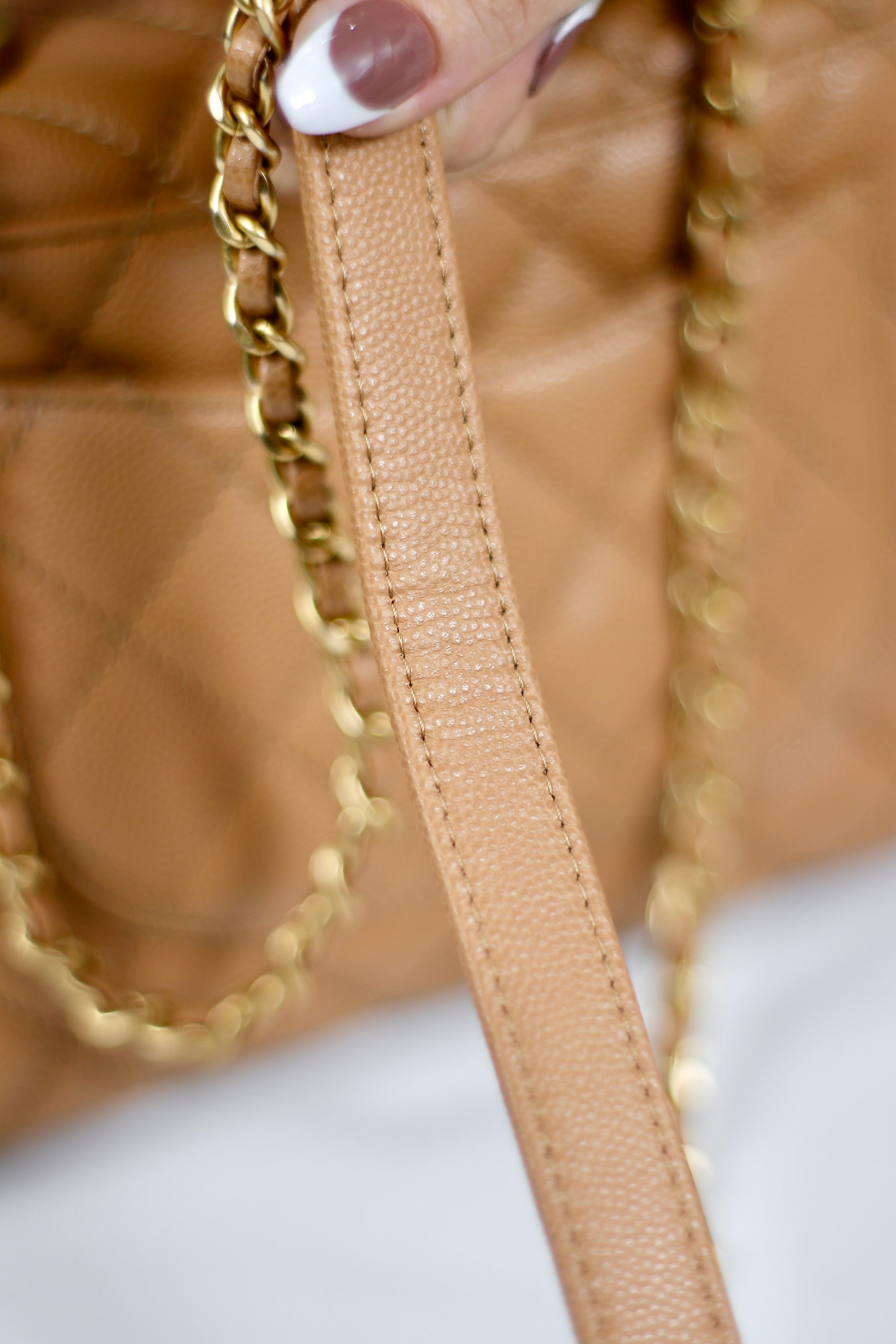 A timeless favorite with a modern twist. The Coco Handle in Caramel from the coveted 23P collection features durable caviar leather and luxurious gold-tone hardware. With its structured top handle and functional crossbody strap, this bag balances elegance and practicality.