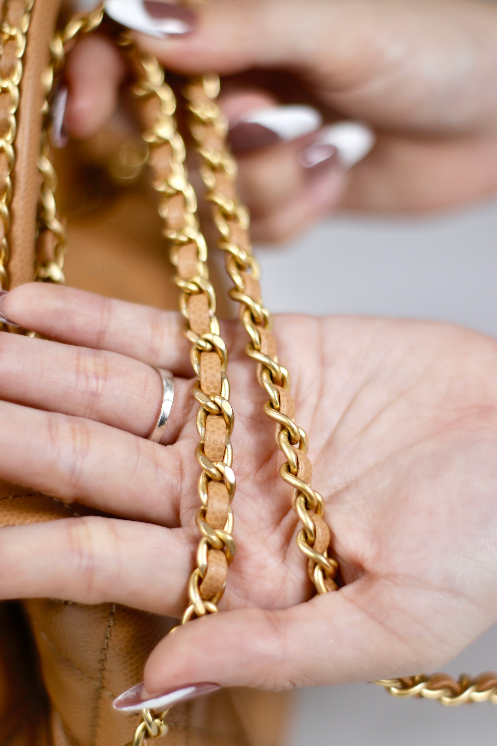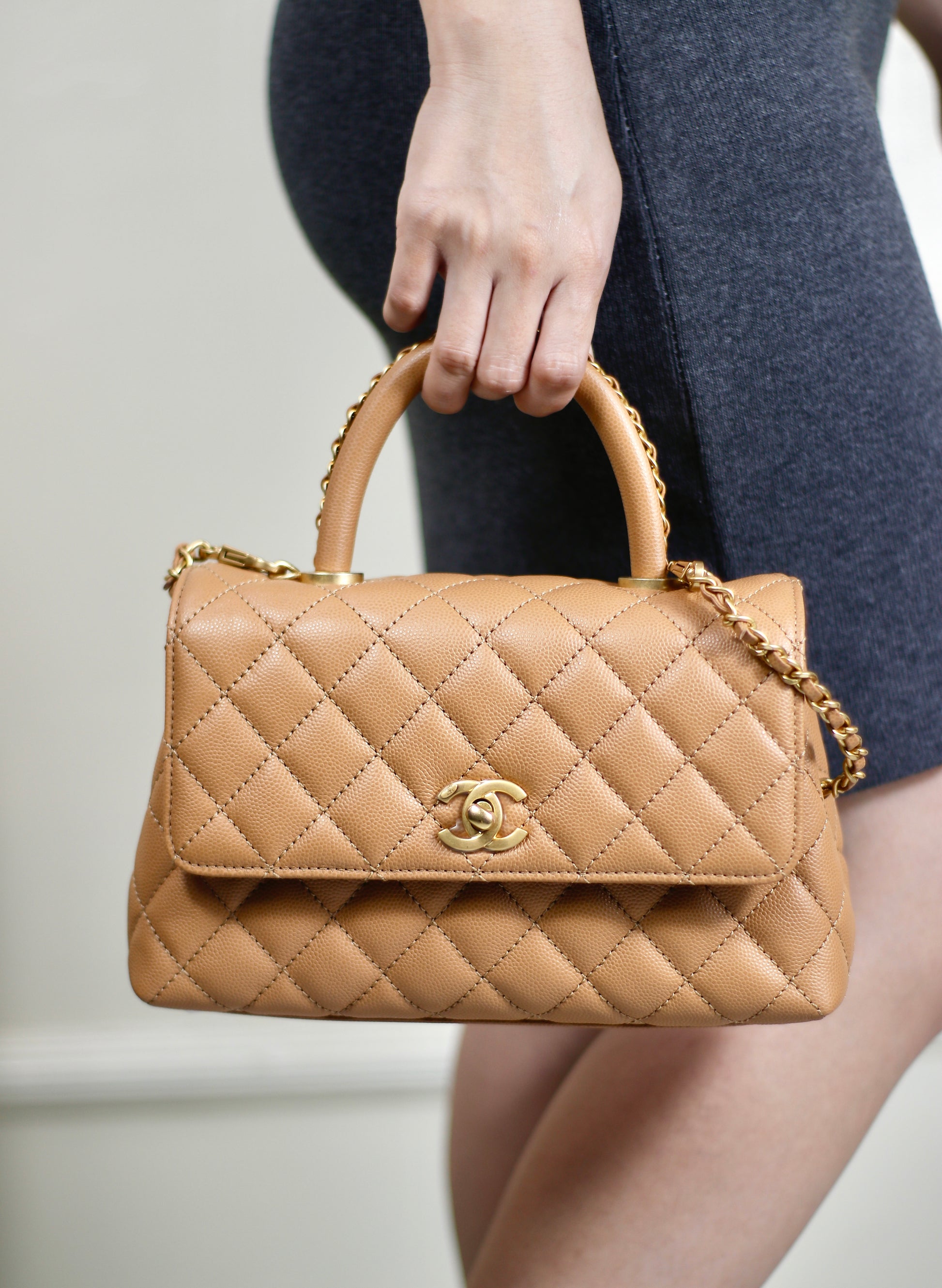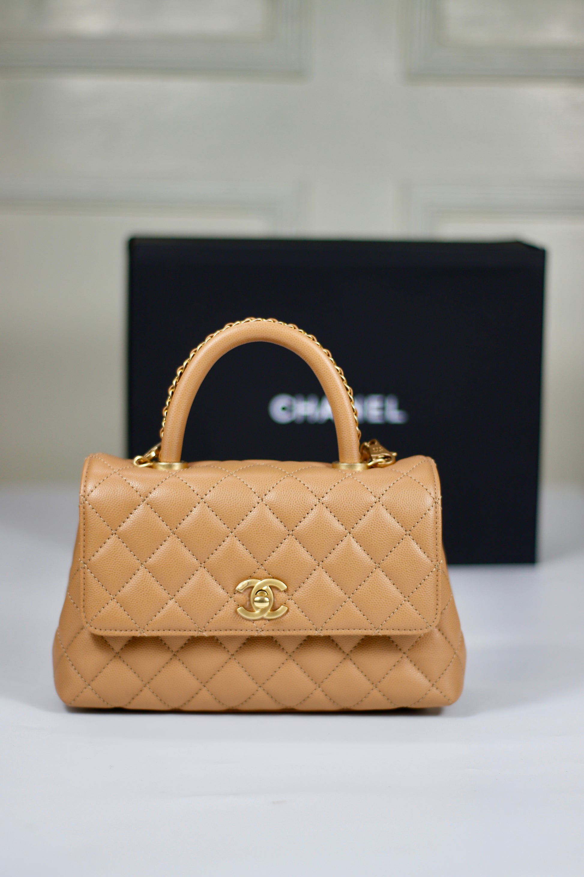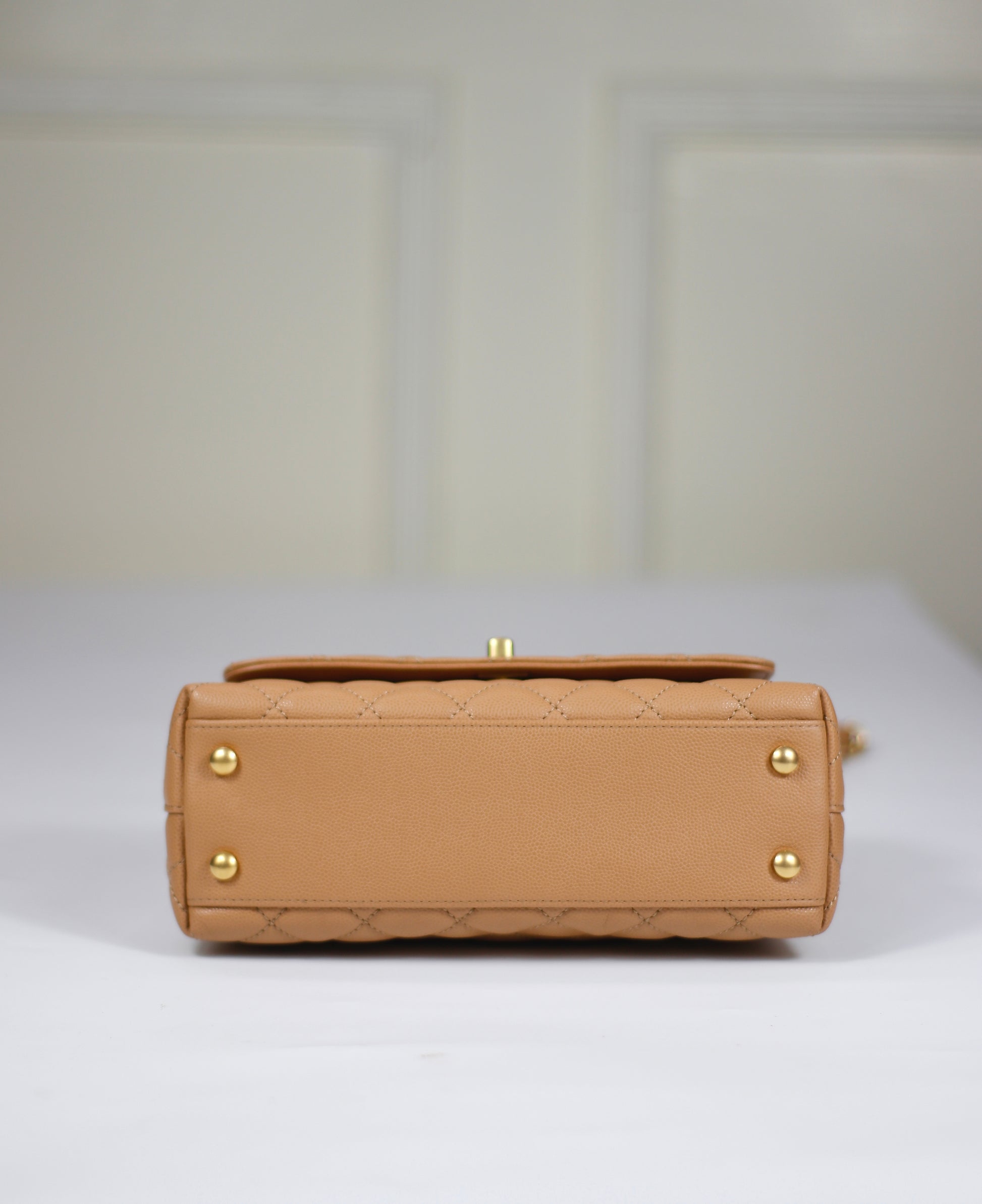 A timeless favorite with a modern twist. The Coco Handle in Caramel from the coveted 23P collection features durable caviar leather and luxurious gold-tone hardware. With its structured top handle and functional crossbody strap, this bag balances elegance and practicality.