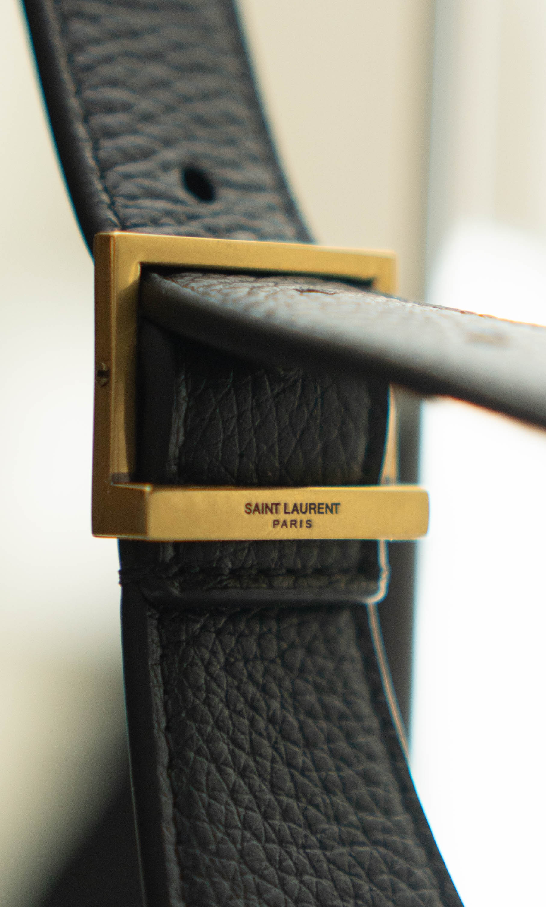 - Closure: Open top with leather tab and Cassandre (YSL) hook closure